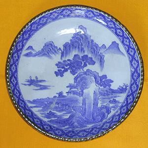 縁回りの菊菱が美しく新鮮だ。うまくはないが絵の構成がいいのは画工の感性だろうが、それが陶工に伝わらなかったのか、いげも甘いしグラつきがある。器のツヤもベロ藍の乗りもよいだけに残念。