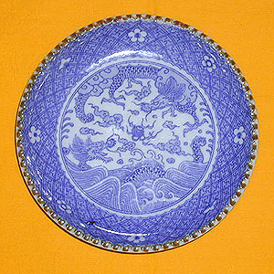 見慣れた絵柄の双龍。なぜか鱗が印象深い。5枚で3000円はお買得。銘印は刻印ではなく印判で、時代は昭和に入っていると思う。普段使いにしてあげるとお皿もきっと喜ぶだろう。