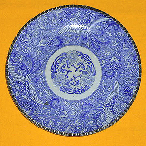 見込みには牡丹唐草の3連が、そしてその回りを白抜きの鳳凰唐草の3連が回っている。裏側にはだいぶ傷があるが、図柄の良さが補って余りある。