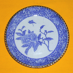 花は牡丹だが葉が違う気がする。でもこれはやはり牡丹だろう。むしろ回りの唐草の葉が牡丹の葉ではないのか。美濃焼かもしれない。